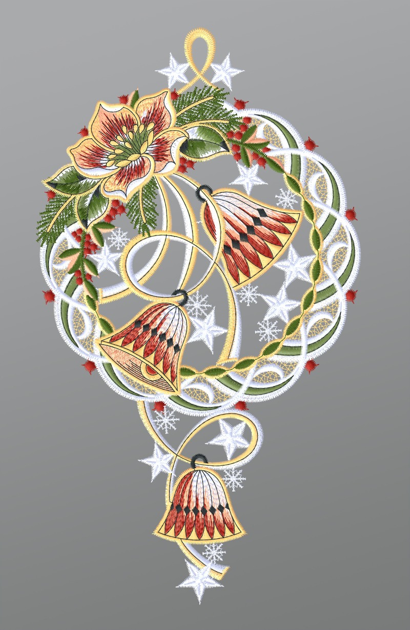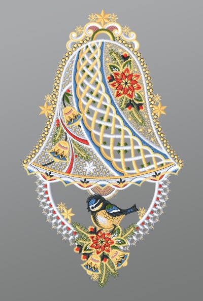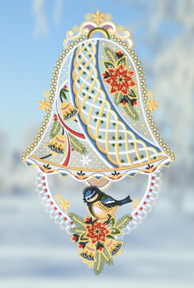 24,25 CHFFensterbild aus Plauener Spitze® - Glöckchen mit Kranz #1W mehrfarbig
