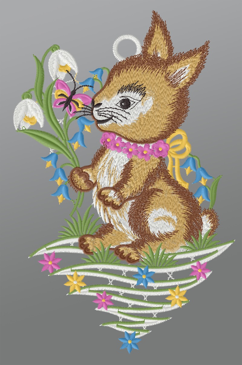 25,85 CHFFensterbild aus Plauener Spitze® - Osterhase mit Blütenhut #1W mehrfarbig