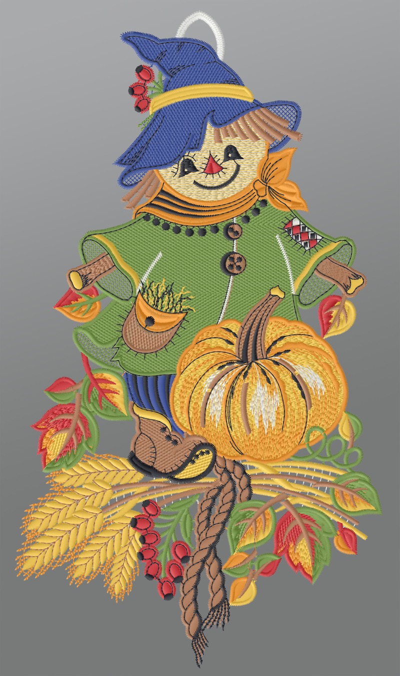 Fensterbild aus Plauener Spitze® - Herbstliche Vogelscheuche #1W mehrfarbig