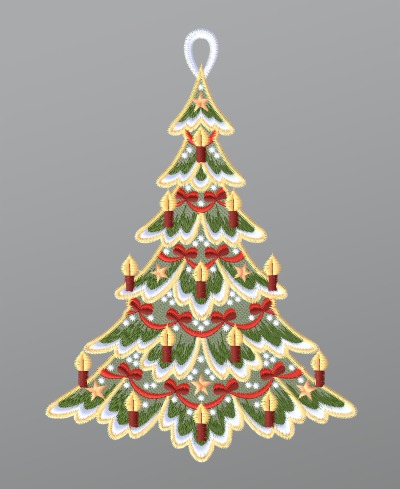 19,75 CHFFensterbild aus Plauener Spitze® - Festlich geschmückter Tannenbaum #1W mehrfarbig
