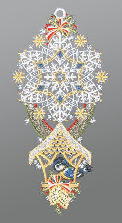 27,55 CHFFensterbild aus Plauener Spitze® - Blaumeise mit Kapelle und Stern #1W mehrfarbig