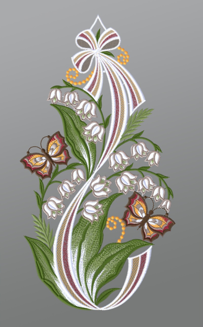 - Motivbeschreibung: Maiglöckchen mit Schmetterlingen