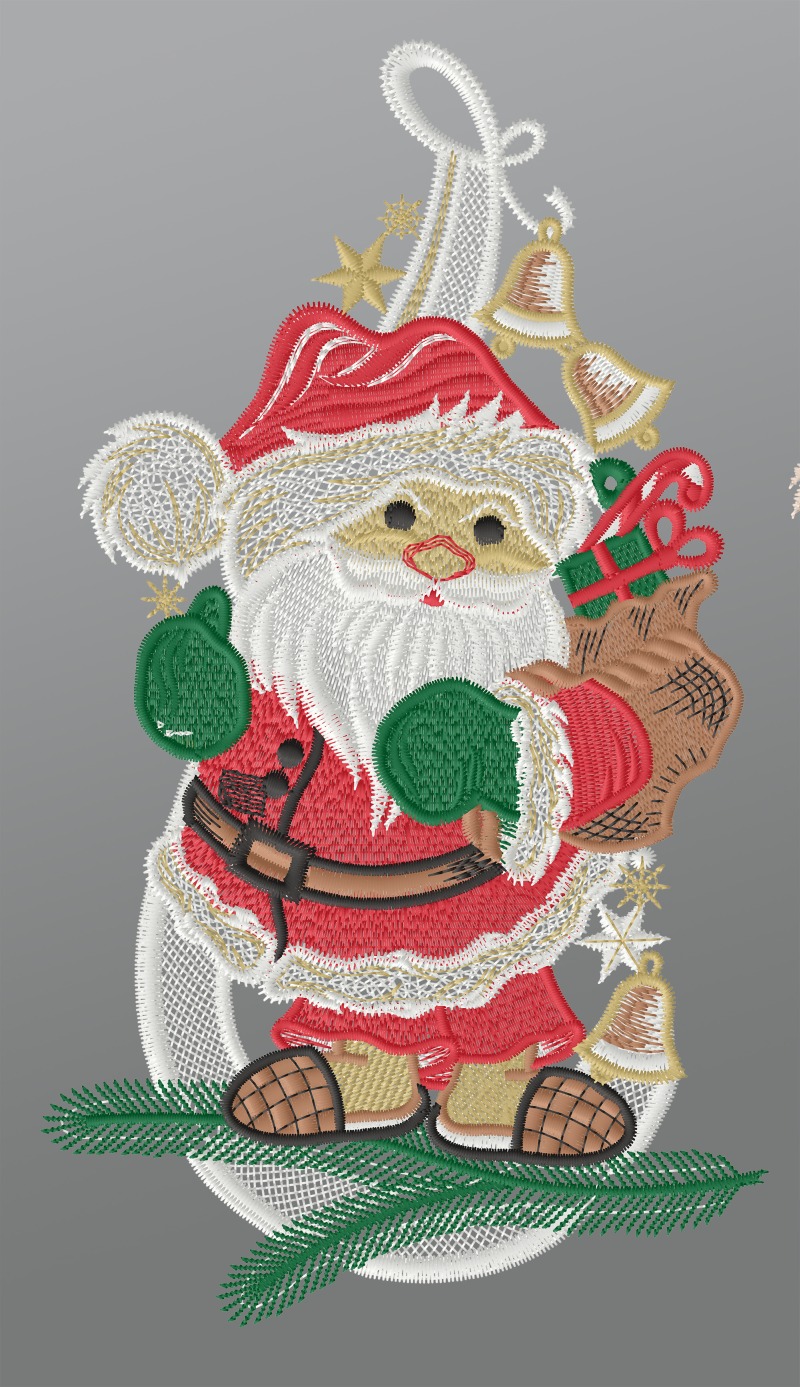 Fensterbild aus Plauener Spitze® - Niedlicher Weihnachtsmann #1W mehrfarbig