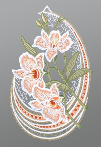 27,55 CHFFensterbild aus Plauener Spitze® - Orchideen mit Designbogen #1W mehrfarbig
