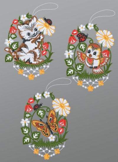 24,25 CHFFensterbilder aus Plauener Spitze® - 3er SET Tierisches Trio #1W mehrfarbig