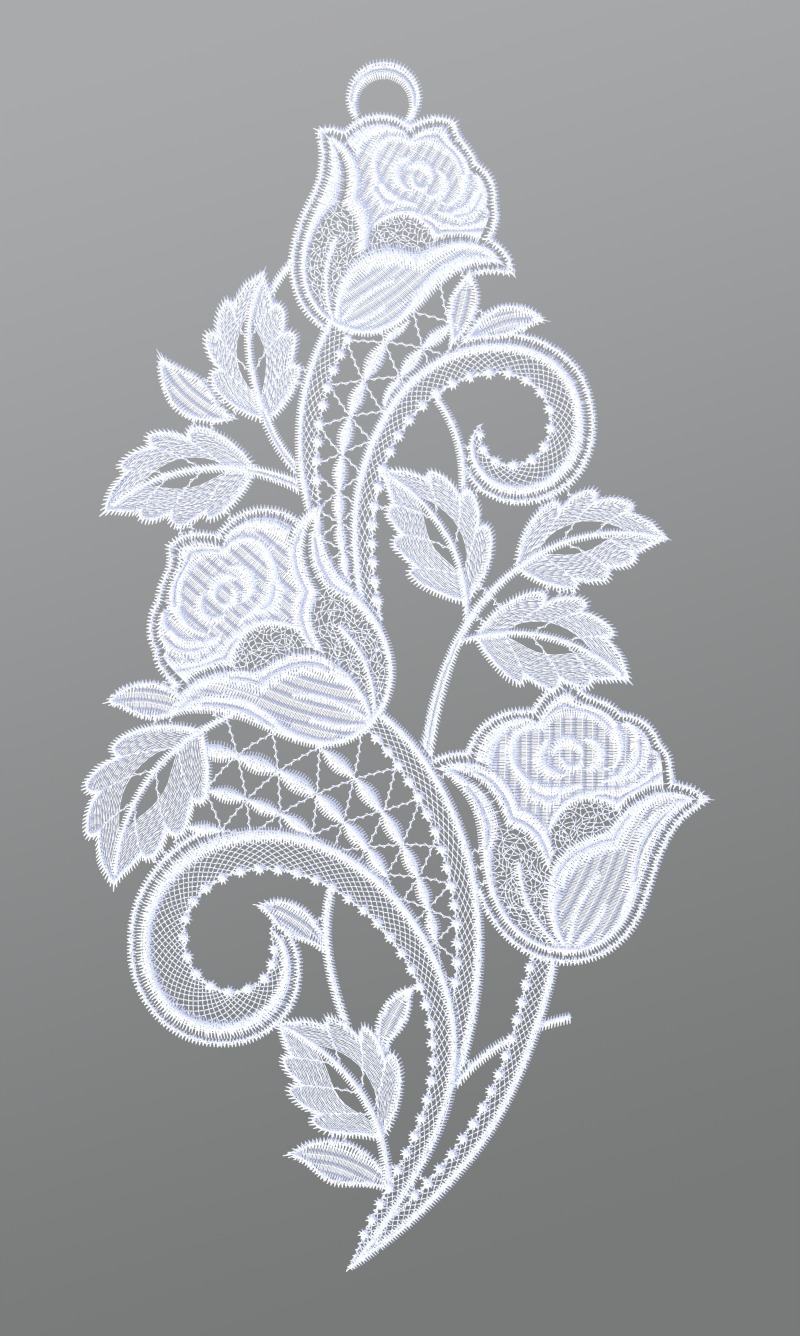 Fensterbild aus Plauener Spitze® - Rosenranke #1W in Weiss