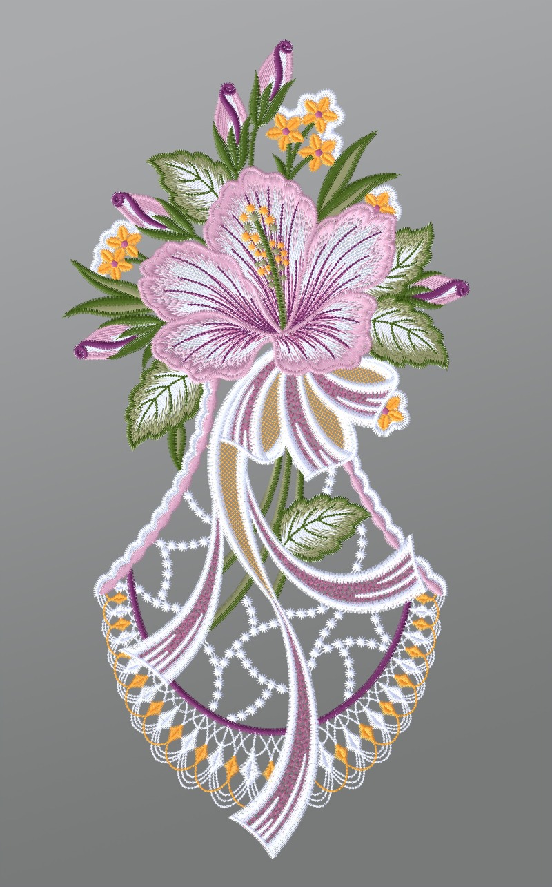 31,75 CHFFensterbild aus Plauener Spitze® - Hibiskus mit Schleife #1W mehrfarbig