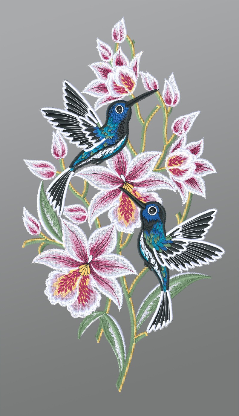 25,85 CHFFensterbild aus Plauener Spitze® - Kolibris mit Orchideen #1W mehrfarbig