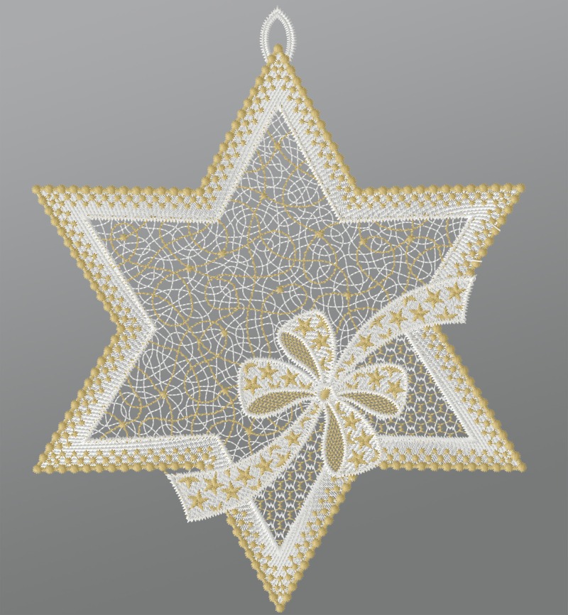 Fensterbild aus Plauener Spitze® - Stern mit Schleifendekor #1W gold