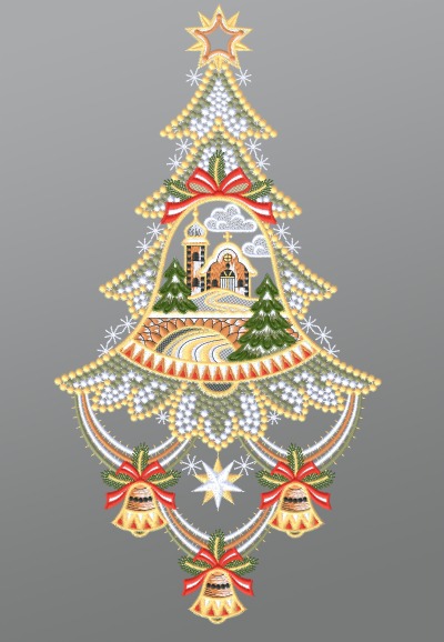 24,25 CHFFensterbild aus Plauener Spitze® - Glocke mit Winterszene #1W mehrfarbig