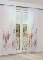 - Eine Schiebegardine aus halbtransparentem Stoff