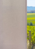 Eine milde Wohnlichkeit bringt die Schiebegardine in sanftem, mildem Blassbraun zum Ausdruck. Der erdige, ruhige Naturton sorgt für Wärme und Harmonie im Raum. Entspannend und gemütlich wird es mit verwandten Tönen wie Ecru, Creme, Beige und Sand. Für wirkungsstarke Farbkontraste sorgen Sie mit dunklen Blau- und Grautönen, edlem Blaugrün oder Violett.