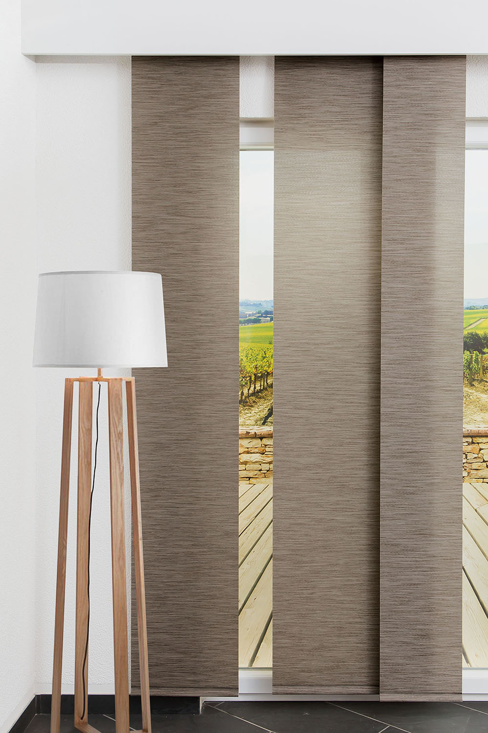 Diese Flächengardine erinnert mit seiner deutlich akzentuierten Webstruktur entfernt an Bambusmatten oder Grasgeflecht. Die naturnahe Farbgebung in feinen, den Stoff mit mehr oder weniger starken Kontraste melierenden Streifen verstärkt diesen Eindruck. Aber auch funktional hat dieser Flächenvorhang einiges vorzuweisen. So ist es zum Beispiel Teflonbeschichtet und damit äusserst resistent gegen Verschmutzungen. Der Stoff lässt etwas Licht in den Raum. So entsteht ein lebendiger und natürlicher Gesamteindruck, der vielen Räumen gut steht. Dabei präsentiert sich die Schiebegardine in natürlich-mediterranem Terrakotta und eignet sich besonders für mediterrane bis urige Einrichtungsstile.