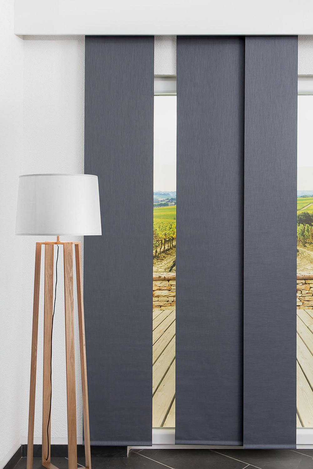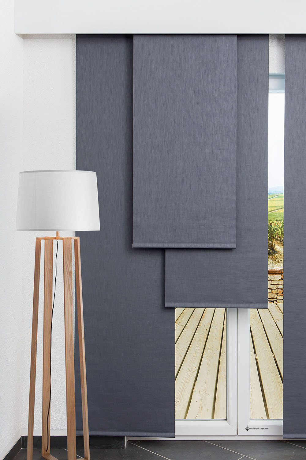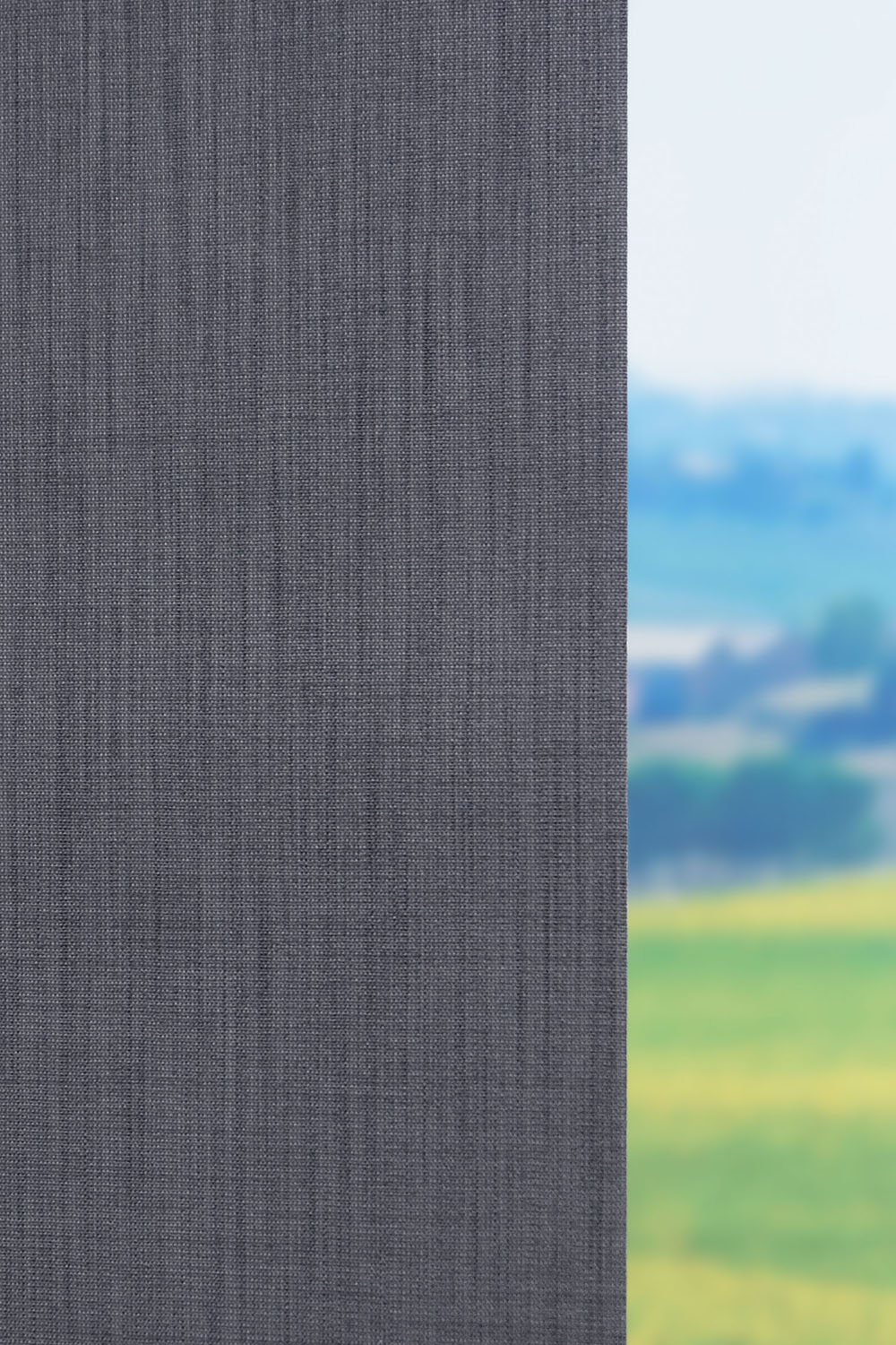 Diese Flächengardine zeigt seine zarte Stoffstruktur vor Ihrem Fenster, und lässt dabei doch kein Licht in den Raum. Durch die sichtbare Webstruktur des Flächenvorhangs wird der textile Charakter besonders betont. Dazu bietet der Stoff handfeste Funktionen wie Waschbarkeit bei 30 Grad per Hand und eine Aussenbeschichtung, die effizient vor Licht schützt, womit sich die Schiebegardine relativ gut zur Verdunkelung zum Beispiel in Schlafzimmern eignet. Trotz des abdunkelnden Stoffs ist mit Lichtschlitzen zu rechnen. Das dunkle Grau gibt dem Flächenvorhang eine seriöse Note, kann aber auch gut Farbakzente in der Raumgestaltung zu mehr Leuchtkraft verhelfen.