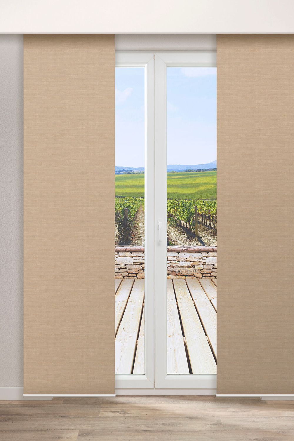 Die lebendige, abwechslungsreiche Struktur dieses Flächenvorhangs erinnert an einen flachgewebten Teppich, wobei man die Oberfläche auch als unregelmässiges, waagerecht angelegtes Streifendesign beschreiben könnte. In jedem Fall sorgt der Flächenvorhang optisch für Abwechslung, die praktischen Eigenschaften des Gewebes verbessern das Wohngefühl. Der Verdunklungs-Flächenvorhang zeichnet sich ausserdem durch eine farblich angepasste Beschichtung auf der Rückseite aus, das Polyestergewebe wird dadurch vollkommen lichtundurchlässig. Sie können die Tageshelligkeit jederzeit aussperren, dem Raum eine geschützte, behagliche und traute Atmosphäre geben. Dazu trägt auch der zuverlässige Sichtschutz bei, der bei geschlossenem Flächenvorhang tagsüber wie nachts gegeben ist. Als Blendschutz für den Bildschirmarbeitsplatz leistet der Flächenvorhang ebenfalls gute Dienste. Die Voraussetzung für die Verwendung in Bad und Küche liefert die Feuchtraumeignung des Gewebes. Hohe Wärme sowie Dampf und Dunst machen dem Stoff nichts aus, er behält seine Form und trocknet schnell.