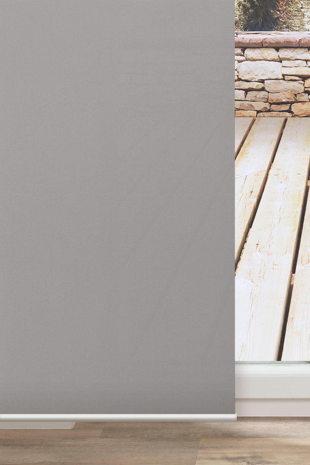 Die Oberfläche dieses unifarbenen Flächenvorhangs aus Dimout-Stoff ist mit einer natürlichen Webstruktur gestaltet, welche dem Raum mehr Wohnlichkeit und Gemütlichkeit verleiht. Der Flächenvorhang aus schwer entflammbarem Polyestergewebe kann im privaten wie im gewerblichen Bereich die Fenster ausstatten und dort unter anderem als Blendschutz dienen. Die Rückseite des Flächenvorhangs ist mit einer Perlreflex-Beschichtung versehen. Der Flächenvorhang versteht es, den Raum angenehm zu verdunkeln und zum Beispiel im Wohnzimmer, Schlaf- und Kinderzimmer für eine lauschige Dämmerungsatmosphäre zu sorgen. Auch wenn noch eine kleine Menge Restlicht durch den Stoff kommt, vor neugierigen Blicken bleiben Sie mit diesem Flächenvorhang als zuverlässigen Sichtschutz stets bewahrt. Dem Stoff machen die besonderen Bedingungen in Bad und Küche nichts aus, selbst bei hoher Wärme und Luftfeuchtigkeit bleibt der Flächenvorhang formstabil und trocknet schnell.