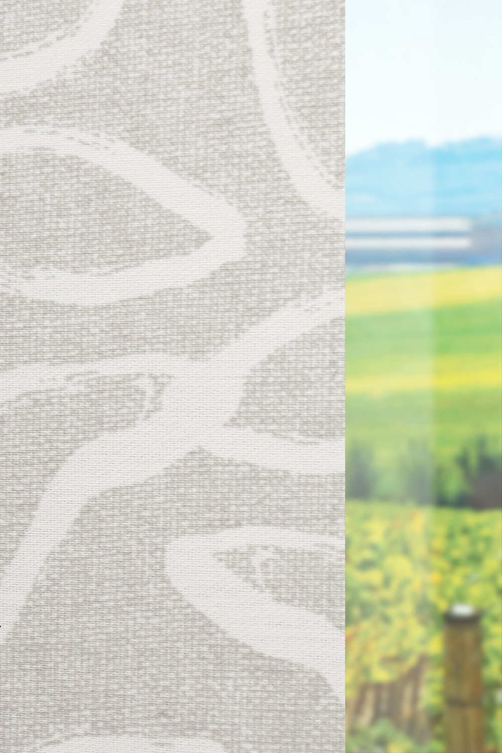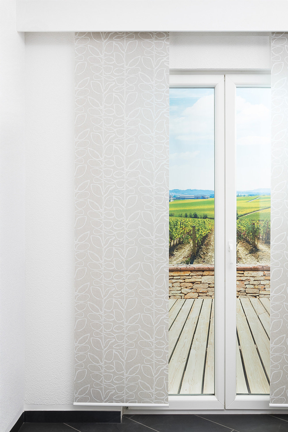 Mit seinem munteren Blumenmuster zeigt sich dieser Flächenvorhang offen für Neues. Die Ranken, welche auf dem Stoff empor spriessen, wurden modern umgesetzt. Die Stängel stehen für Geradlinigkeit, die Blätter lockern das Design auf. In unterschiedlicher Grösse und Form wissen sie das Auge immer wieder aufs Neue zu beschäftigen. Durch die Halbtransparenz des Materials wird Tageslicht nicht vollkommen ausgesperrt, neugierige Blicke aber zuverlässig abgeschirmt. In dezenten Farben öffnet sich die Schiebegardine den unterschiedlichsten Einrichtungsideen. Hellbraun und ein zartes Türkis sind ideale Begleiter von warmen Farben oder zarten Pastelltönen. Das Design zeigt sich weniger klassisch und bietet damit auch modernen und jungen Wohnideen eine stimmige Umrahmung.