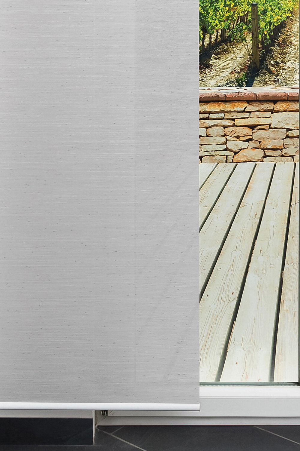 Dieser Flächenvorhang überzeugt durch eine besonders feine und natürliche Webstruktur, durch die das Tageslicht sehr wirkungsvoll in Szene gesetzt wird. Auch als Sichtschutz ist der Behang geeignet. Durch das feine Gewebe sind höchstens noch Umrisse erkennbar. Ideal ist die feuchtraumgeeignete Schiebegardine für die Fensterdeko im Bad und in der Küche, denn das Material lässt noch viel Tageslicht herein.