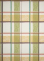 Die verschiedenfarbigen Bereiche lassen helle Gelbtöne und mildes Lindgrün erkennen. Die Stickereien heben sich aufgrund der farblich gleichen oder ähnlichen Gestaltung nur dezent ab. Da sich die Kästchen überlappen, entstehen an manchen Stellen auch neue Farben. Die Linien sind in hellen und dunklen Rottönen, Gelb und Blau gestaltet. Besonders ausdrucksstark heben sich die dünneren, weinroten Linien von dem Design ab. Indem Sie in Ihrer Deko Farben aufgreifen, die auch im Muster vorkommen oder in einer der Farbfamilien dekorieren, wirkt das Ambiente heimelig und gemütlich.