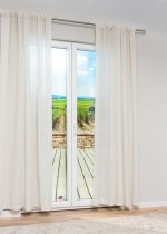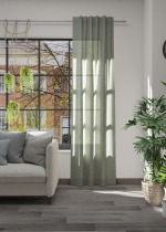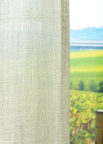 - Ein transparenter Vorhang aus 88% Polyester, 12% Leinen, (50% recycelt).