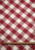 Durch das rot-weisse Karomuster erinnert dieser Dekostoff an die Tischdecken vom Italiener um die Ecke. Die glutvolle, warme Farbe wird durch das frische Weiss wunderbar aufgelockert. Naturbelassenes Holz, dunkle Grüntöne und helle Erdfarben passen hier wunderbar dazu und greifen gleichzeitig das Edelweiss-Motiv wieder auf.