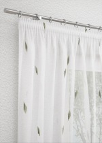 Mit diesem Modell können Sie Einrichtungen hell und freundlich gestalten und haben gleichzeitig eine attraktive, äusserst vielseitige Raumdekoration. Ihre Optik zeichnet sich durch ein mit grossen Abständen angelegtes, aber dennoch auffallendes abstraktes Muster aus. Es wirkt, als habe ein Maler hier intuitiv zart schimmernde Pinselstreifen gesetzt, die dem Design eine gewisse Eleganz einhauchen. Dadurch passt er in ein modernes Interieur, gleichzeitig aber auch in klassisch eingerichtete Wohn-, Ess- oder Schlafzimmer. Das an den Seiten und am Abschluss gesäumte Polyestergewebe überzeugt zusätzlich durch seine Funktionalität, auch dank des eingearbeiteten Bleibandes. Der transparente Stoff kann effektvoll mit einfallender Sonne spielen. Ihre vier Wände werden offenen und einladender. Möchten Sie den textilen Raumschmuck reinigen, geht das am besten im Schonwaschgang der Waschmaschine bei 30°C.