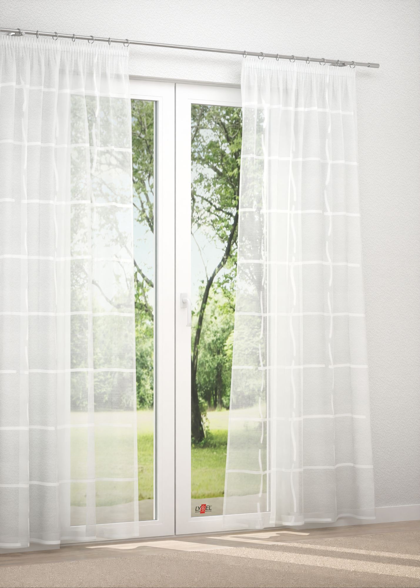 Ebenso wie der hauchfeine Stoff ist auch das darin eingewebte Muster in Weiss gestaltet. Dieses hebt sich vor allem aufgrund der reliefartigen Struktur ab. Dabei wirkt das Design reduziert und modern. Je nach umgebender Dekoration können Sie dieses Modell abwechslungsreich in Szene setzen, ihm zarte, harmonische Farben oder extravagante, knallige Töne gegenüberstellen.