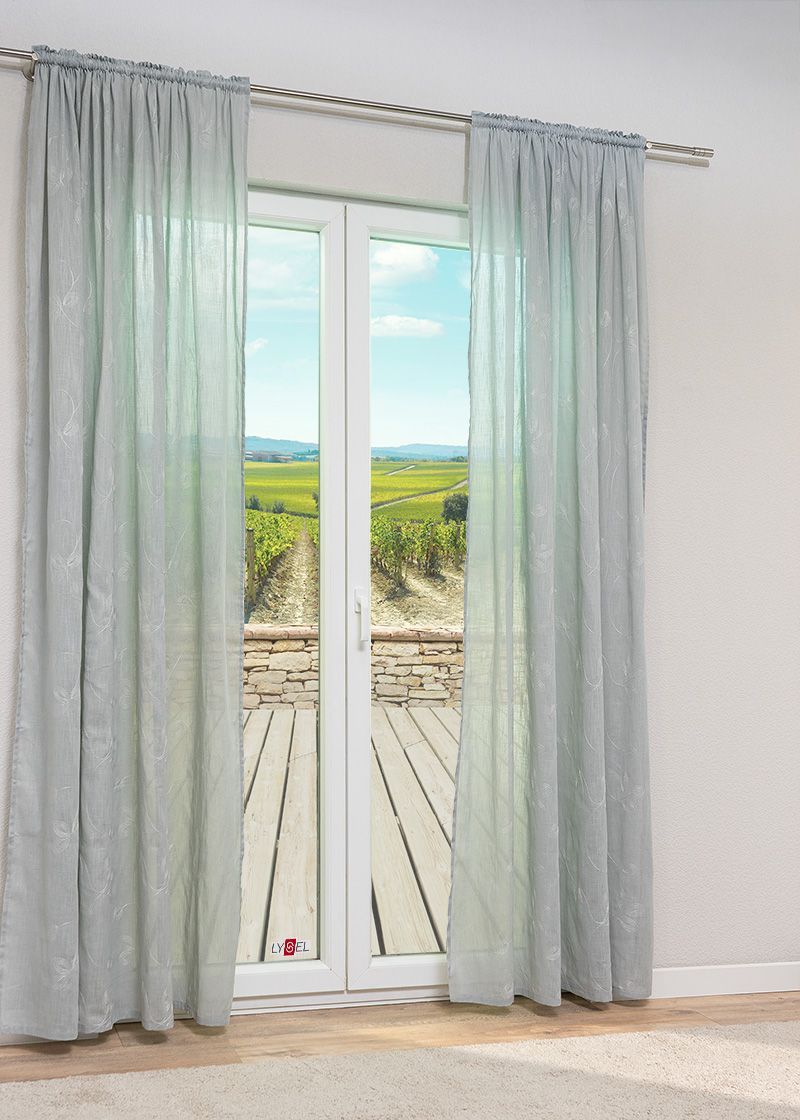 - Ein transparenter Vorhang aus 100% Baumwolle.
