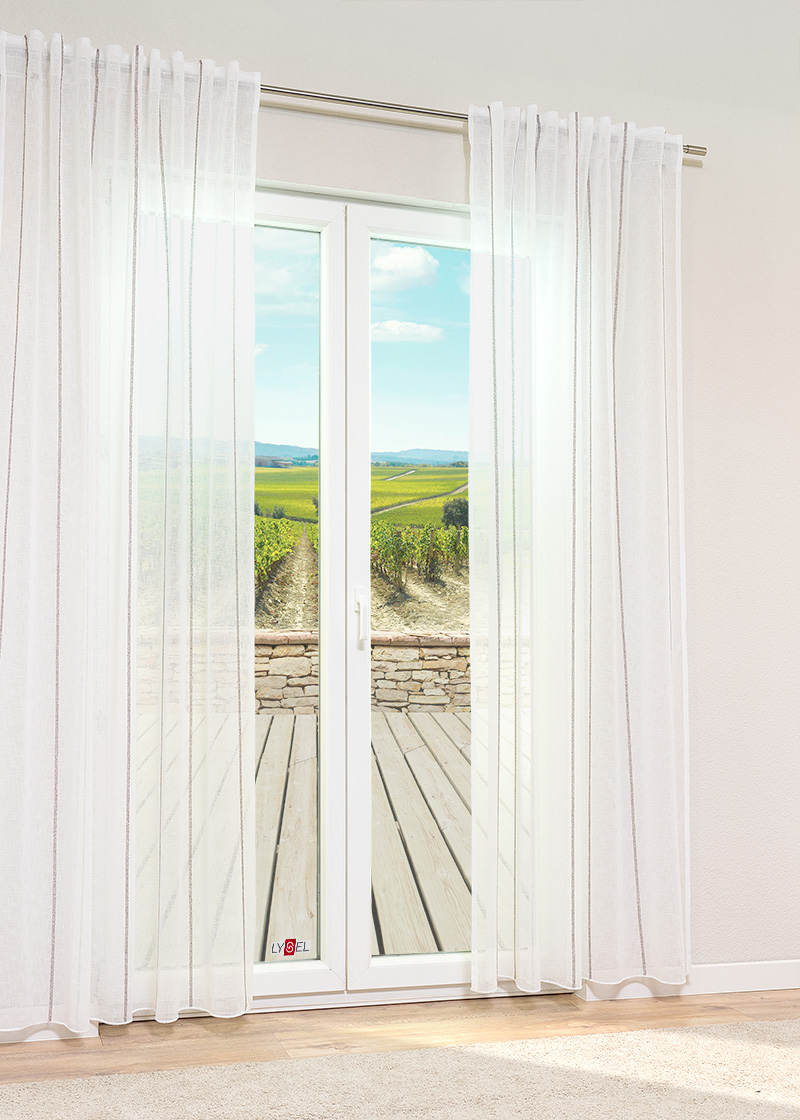 - Ein transparenter Vorhang aus 100% Polyester.