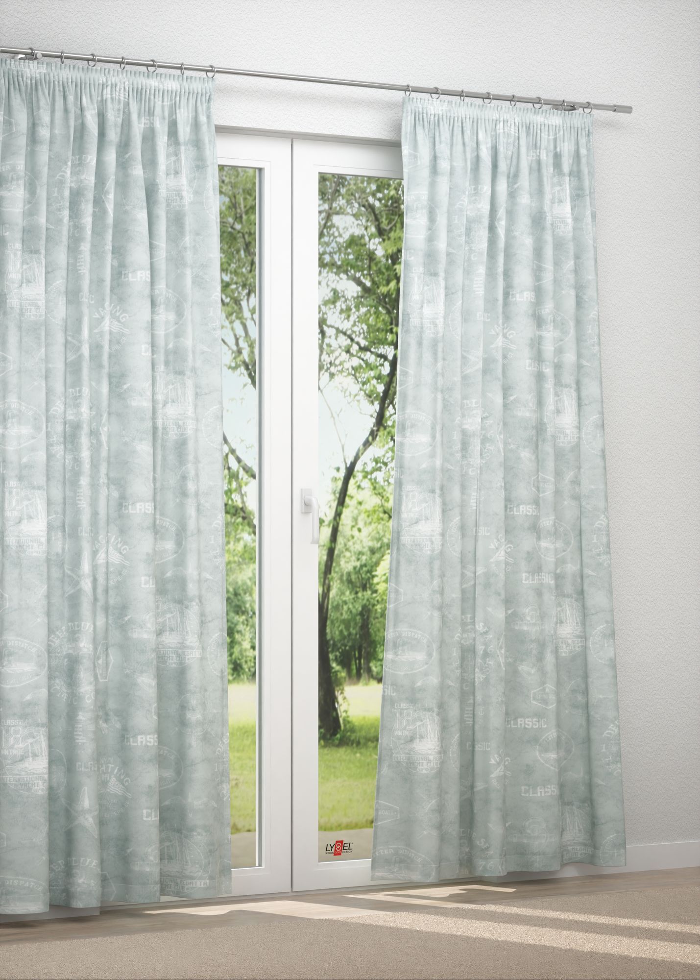 Der marmorierte, leinenähnliche Stoff mit griffiger Haptik und grober Struktur ist die perfekte Basis für das maritime Design. Auch wenn der Hintergrund an die tosende See erinnern kann, die grossen Symbole, etwa Möwen, Anker, Steuerräder, Schriftzüge, Flaggen und Schilder, heben sich durch die einheitliche Gestaltung sanft, aber wirkungsvoll von dem Hintergrund ab und sorgen für ein leichtes, unbeschwertes Flair im Raum. Dabei kann dieses Polyestergewebe die Grundlage für die verschiedensten Arten von Accessoires sein, etwa Kissenbezüge, Tischdecken oder Sicht- und Sonnenschutz am Fenster. Sie können diese selbst nähen oder unseren Konfigurator nutzen, der ebenfalls viel Gestaltungsfreiheit bietet. Als Gardinenschal oder Raffrollo nach Mass am Fenster befestigt lässt der Stoff mildes Licht hindurch, gleichzeitig bleibt Ihre Privatsphäre gewahrt. Selbst abends bei eingeschalteter Beleuchtung sind von aussen höchstens grobe Konturen wahrnehmbar.