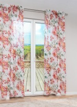 Dieser Dekoschal hüllt den Raum in ein wunderbares Blütenmeer aus lebendigen Farben, erzeugt dabei eine warme und naturnahe Atmosphäre. Das florale Muster schmückt die Gardine in vollem Umfang. Damit kann sich dieses Modell sowohl in klassische wie in moderne Wohnstile harmonisch einfügen. Der Schal ist nicht nur dekorativ, sondern auch überaus praktisch und lässt sich ganz Ihren Bedürfnissen anpassen. Eine individuelle Anfertigung nach Ihren spezifischen Massen ist möglich. Die Transparenz des Polyestergewebes sorgt dafür, dass die Räume hell und freundlich bleiben und Sie einen unverstellten Blick auf die blühende Welt vor Ihrem Fenster geniessen können. Der Vorhang wird mit Multifunktionsband befestigt. Integriertes Bleiband am oberen Abschluss gewährleistet einen schönen Fall. Zubehör wie Gardinenstangen und Verzierungen können Sie in unserem Shop bestellen. Für die Reinigung empfiehlt sich der Schonwaschgang bei 30°C in der Maschine.