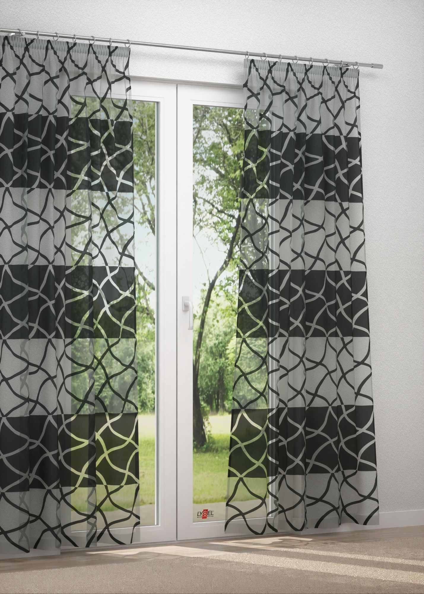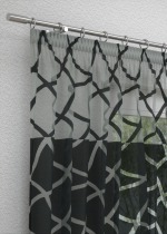 Hier ist der gesamte Stoff mit einem Muster in Ausbrenner-Optik gestaltet. Die halbtransparenten, geschwungenen Linien sind das entscheidende Designelement und nehmen die gesamte Oberfläche ein. Durch die Schnittpunkte gibt sich ein an ein geflochtenes Netz erinnerndes Design zu erkennen. Entfernt kann es auch an vom Wind bewegtes Wasser erinnern. Die unterschiedlichen Transparenzen lassen lebendige und ausdrucksstarke Effekte entstehen, die besonders bei einer Fensterdeko ihre ganze Wirkung entfalten. Nutzen Sie den Konfigurator, um beispielsweise ein Raffrollo oder einen Gardinenschal nach Mass individuell zusammenzustellen. Dabei können Sie auch Einfluss auf den oberen Abschluss, also die Aufhängung, nehmen. Als Tischdecke oder Tischläufer eingesetzt lässt dieses Modell die Oberfläche des Tisches bzw. die Optik des darunterliegenden Stoffes zum Vorschein kommen. Möchten Sie eigene kreative Ideen umsetzen, bestellen Sie die Meterware.