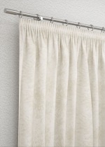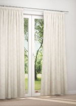Bei diesem cremefarbenen Stoff fällt das florale Muster fast nur aufgrund seiner Struktur auf. Seine angenehme Aura kann sich dennoch vollends entfalten. Ganz leicht heben sich die Blüten von dem Stoff ab und verleihen dem Raum eine elegante und stilvolle Note. Für schöne Ton-in-Ton-Kombinationen mit verwandtem Weiss und Beige sowie weiteren Naturtönen wird das Ambiente besonders heimelig und gemütlich. Kissen, Decken und Teppiche in softem Nude tragen dazu ebenfalls bei.