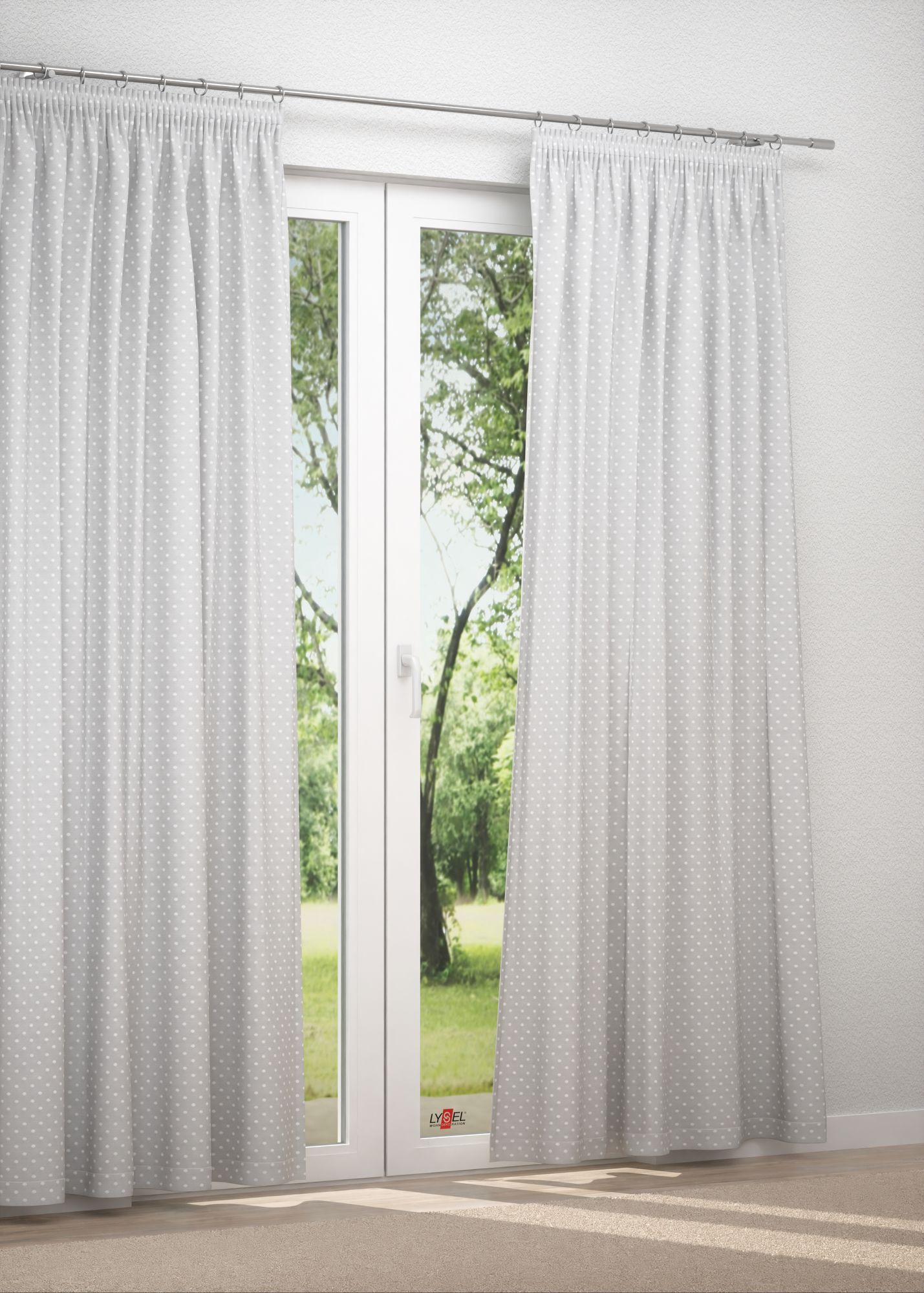 Dieser unifarbene, feine Stoff ist mit silbern schimmernden Punkten verziert und erhält dadurch eine verspielte Eleganz. Die gleichmässige Anordnung der kleinen Punkte sorgt gleichzeitig für eine ruhige, harmonische Aura. Die Rückseite des lichtdurchlässigen Stoffes stellt das Muster in Negativ-Optik dar, eine schöne Basis für immer wieder neue Looks. Indem Sie mit Abstufungen der Farben spielen und durch unifarbene Deko-Elemente das Muster für sich wirken lassen, schaffen Sie ein einladendes gemütliches Flair. Die gesäumten Seiten und der gesäumte Abschluss unterstreichen die hochwertige Verarbeitung. Das Gewebe besteht zu fast gleichen Teilen aus Polyester und Polyacryl, lässt sich schonend bei 30 Grad reinigen.