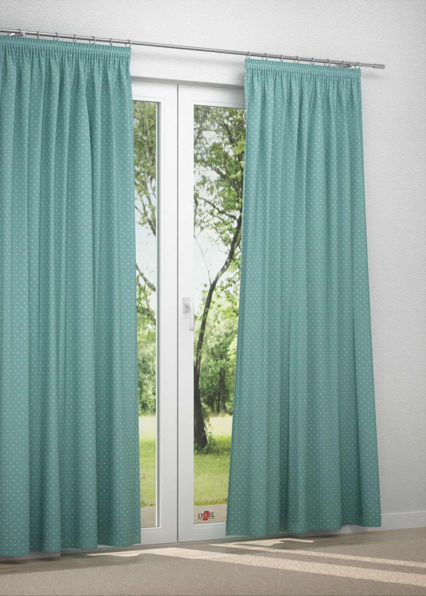 Dieser unifarbene, feine Stoff ist mit silbern schimmernden Punkten verziert und erhält dadurch eine verspielte Eleganz. Die gleichmässige Anordnung der kleinen Punkte sorgt gleichzeitig für eine ruhige, harmonische Aura. Die Rückseite des lichtdurchlässigen Stoffes stellt das Muster in Negativ-Optik dar, eine schöne Basis für immer wieder neue Looks. Indem Sie mit Abstufungen der Farben spielen und durch unifarbene Deko-Elemente das Muster für sich wirken lassen, schaffen Sie ein einladendes gemütliches Flair. Die gesäumten Seiten und der gesäumte Abschluss unterstreichen die hochwertige Verarbeitung. Das Gewebe besteht zu fast gleichen Teilen aus Polyester und Polyacryl, lässt sich schonend bei 30 Grad reinigen.