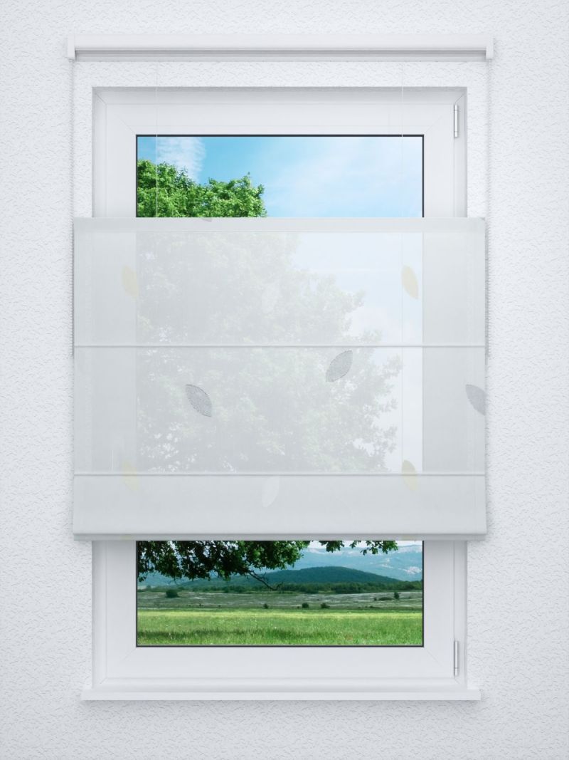 Als besondere Webart trifft hier ein Scherli-Muster auf einen hauchfeinen, transparenten Polyesterstoff, der Luftigkeit und Leichtigkeit ausstrahlt. Dabei unterscheiden sich die in grossen Abständen angeordneten Blätter mit den charakteristischen ausgefransten Rändern deutlich voneinander. Während die einen zart und dezent, mit einem leichten Schimmer und feinen Strukturen daherkommen, heben sich die glitzernden Blätter effektvoll von dem durchsichtigen Stoff ab. Nutzen Sie den Konfigurator, um individuelle Fensterdeko und Tischwäsche ganz nach Ihrem Geschmack zu gestalten. Ein massgefertigtes Raffrollo oder ein Gardinenschal nach Mass lässt aufgrund des transparenten Stoffes viel Licht in den Raum und diesen einladend und freundlich wirken. Das durchsichtige Gewebe und das reduzierte, naturnahe Blätterdesign sorgen für eine angenehme und ruhige Atmosphäre. Als Meterware bietet der Stoff beste Voraussetzungen für die Herstellung eigener Wohnaccessoires.