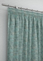 Die unterschiedlichen Schraffuren in Hellblau, Petrol und Grau sorgen für eine abwechslungsreiche Dynamik. Erinnernd an eine Spiegelung im Wasser sind verwandte Blau- und Grautöne hier eine schöne Ergänzung. Akzente setzen Sie mit satten Gelbtönen, rötlichem Holz und Deko-Elementen in Kupfer, Gold oder Messing. Auch leise Puder- und Pastelltöne können den wohnlichen Charakter noch unterstreichen.