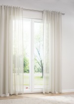 Das hauchfeine, transparente Polyestergewebe mit Leinenstruktur verleiht dem Raum ein gemütliches und naturnahes Ambiente. Der unifarbene Zugbandschal fügt sich je nach Modell perfekt in jedes Interieur ein oder setzt eindrucksvolle Akzente. Durch die in den oberen Saum integrierten Raffbänder wirft der Stoff dezente Falten. Es kommt viel Licht in den Raum, dieser wirkt optisch grösser, offen einladend und freundlich. Mit blickdichten Stoffen, sei es mit Motiv, Muster oder Struktur, lässt sich dieser Zugbandschal ebenfalls kombinieren. Die Aufhängung erfolgt mit einem Schlaufenband. Gardinenstangen, Raffhalter, Innenlaufhaken und weiteres Zubehör können Sie individuell zu Ihrer Bestellung hinzufügen. Gern kürzen wir das Modell für Sie auf die gewünschte Länge.