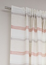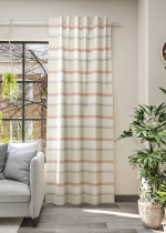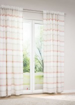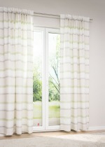 Dieser dekorative Zugbandschal ist mit einem abwechslungsreichen Muster aus Querstreifen verziert. Die Streifen von unterschiedlicher Breite präsentieren sich in harmonischen Farben, manche erscheinen in ihrer Struktur wie meliert. Dem lichtdurchlässigen Zugbandschal gelingt die perfekte Balance zwischen Helligkeit und Sichtschutz. Während Sie eine offene und freundliche Atmosphäre geniessen, bleiben Sie stets vor neugierigen Blicken bewahrt. Seiten und Abschluss sind gesäumt, auf Wunsch kürzen wir die Fertiggrösse auf eine passende, individuelle Länge. Zur Aufhängung dient ein Schlaufenband. Gardinenstangen mit verschiedenen Endstücken können Sie ebenso wie praktische Innenlaufhaken direkt zu Ihrer Bestellung hinzufügen. Ein Schleuderstab erleichtert die Bedienung, Gardinen lassen sich einfach auf- und zuziehen, der Stoff wird geschont. Um das Polyestergewebe mit Leinenanteil zu reinigen, nutzen Sie am besten den Schonwaschgang bei 30 Grad.
