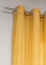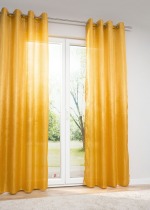 Dieser halbtransparente Ösenschal überzeugt mit lebendiger und abwechslungsreicher Crush-Struktur, seidigem Schimmer sowie unifarbenem Design, wodurch er sich in viele Wohnumgebungen spielend leicht einfügt. Das Polyestergewebe lässt viel mildes Licht in den Raum und bietet tagsüber ausserdem einen gewissen Sichtschutz. Intensive und blendende Sonnenstrahlen wirken mit einem solchen Behang am Fenster um einiges milder. Seiten und Abschluss sind gesäumt. Optional können Sie zur Befestigung an der Wand eine Gardinenstange mit verschiedenen Endstücken hinzufügen. Um die Bedienung zu erleichtern und den Stoff zu schonen, steht ausserdem ein Schleuderstab zur Verfügung. Auf Wunsch kürzen wir die angegebene Fertiggrösse auf eine individuelle Länge und passen den Ösenschal damit an Ihre Fenster an.