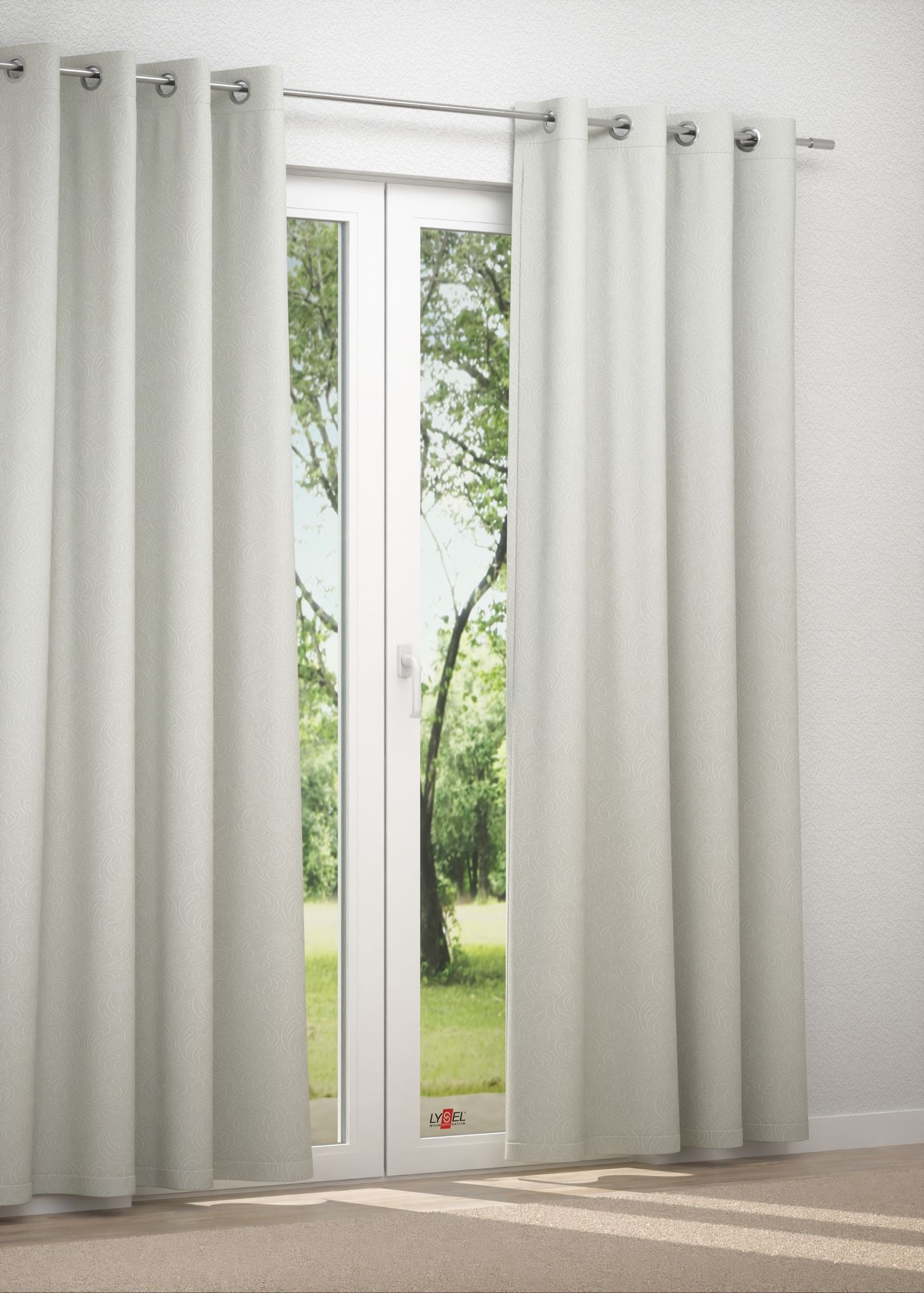 - Ein Ösenschal aus lichtdurchlässigem Stoff, 100% Polyester - individuell nach Ihren Wunschmassen gefertigt.