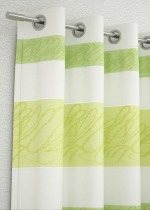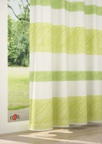 Dieser gestreifte Stoff überzeugt vor allem durch seine abwechslungsreiche Optik und seine vielfältigen Einsatzmöglichkeiten. Die Streifen bewegen sich innerhalb einer Farbfamilie, das Design wirkt harmonisch und stimmig. Dabei sind die farblich intensiveren Flächen noch mit schimmernden, an Arabeske erinnernden, geschwungenen Linien verziert. Das lichtdurchlässige, blickdichte Polyestergewebe können Sie ausserdem schonend bei 30 Grad waschen. Seiten und Abschluss des Stoffes sind gesäumt.