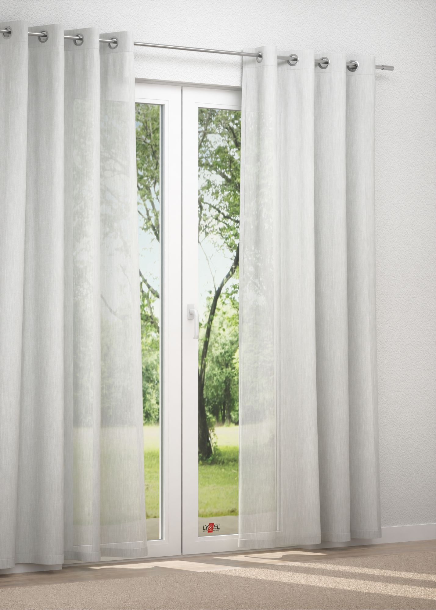 - Ein Ösenschal aus transparentem Stoff, 100% Polyester - individuell nach Ihren Wunschmassen gefertigt.