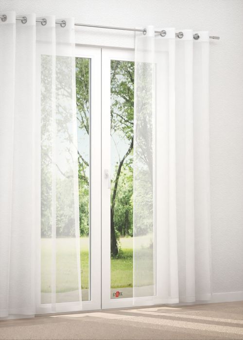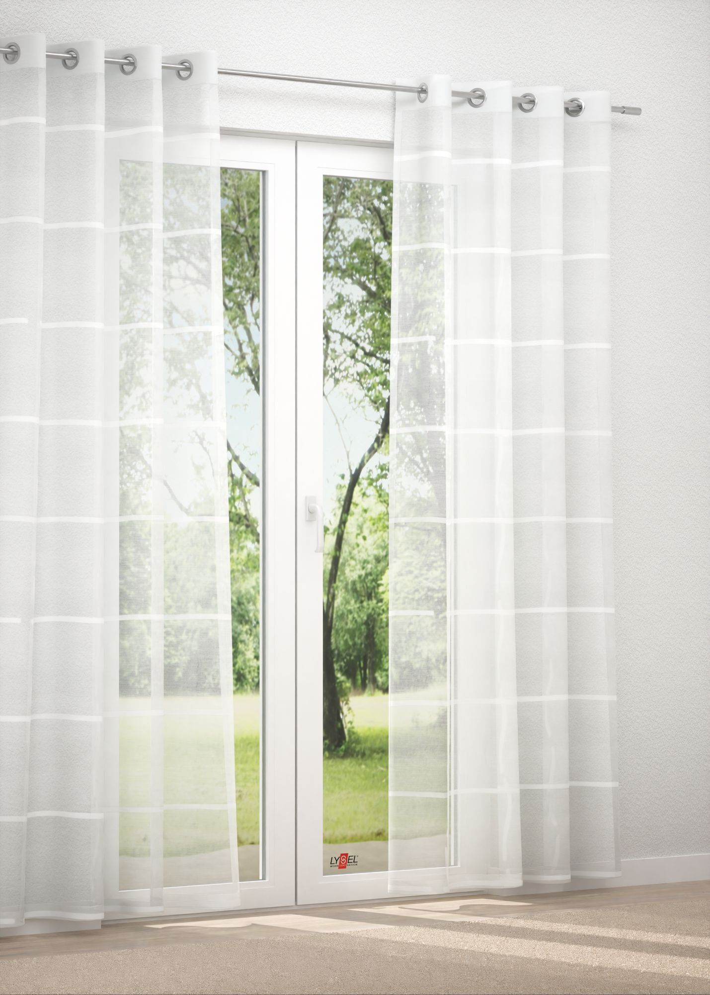 Ebenso wie der hauchfeine Stoff ist auch das darin eingewebte Muster in Weiss gestaltet. Dieses hebt sich vor allem aufgrund der reliefartigen Struktur ab. Dabei wirkt das Design reduziert und modern. Je nach umgebender Dekoration können Sie dieses Modell abwechslungsreich in Szene setzen, ihm zarte, harmonische Farben oder extravagante, knallige Töne gegenüberstellen.