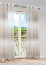 Dieses Modell präsentiert sich mit einem faszinierenden Wechselspiel horizontaler Streifen in verschiedenen Intensitäten. Die Ränder der farbigen Abschnitte lösen sich förmlich auf und verschmelzen harmonisch mit dem Grundmaterial. Dieses leicht verschwommene Erscheinungsbild sieht nicht nur recht attraktiv aus, es fügt sich auch wunderbar in jeden Einrichtungsstil ein. Durch den dekorativen Blickfang und seinen gesäumten Seiten können Sie einen optisch einzigartigen Wohnstil schaffen und gleichzeitig angenehme Lichtverhältnisse geniessen. Dank der Transparenz des Polyesters werden Ihre Wohnräume stets mit viel Tageslicht versorgt. Der Blick aus dem Fenster bleibt dabei nahezu ungefiltert. Ein weiterer dekorativer wie praktischer Aspekt sind die metallisch verstärkten Ösen. An Gardinenstangen oder Seilspannsystemen ist der Schal damit im Nu befestigt. Dieses Zubehör und andere Artikel zur Fensterdekoration finden Sie in unserem Shop. Darüber hinaus bieten wir auch die Möglichkeit, den maschinenwaschbaren Vorhang nach Ihren Wünschen zu kürzen.