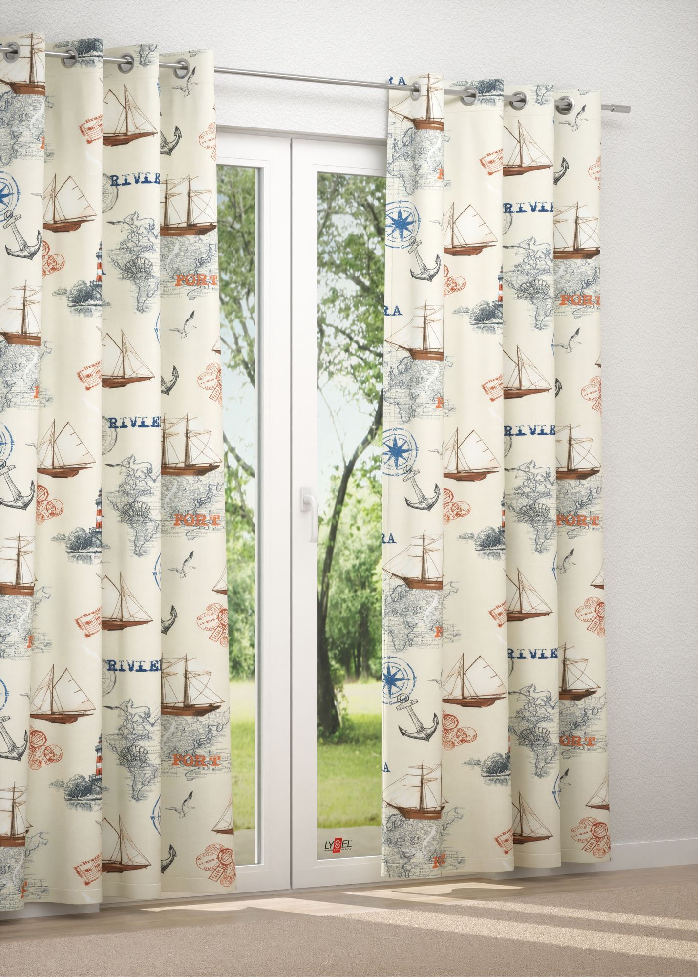 Segelboote, Möwen, Kompassnadeln, Landkarten. Das Design dieses Stoffes steht ganz im Zeichen der Seefahrt. Die raue, salzige Brise und das maritime Flair sind förmlich zu spüren. Möchten Sie auch Grösseres erreichen, die Welt erobern? Dieser Stoff inspiriert dazu, sich seine Träume zu erfüllen und nicht ewig darauf zu warten, dass sie vorbeischippern. Auf dem hellen, naturfarbenen Stoff sind die Gestaltungselemente deutlich zu sehen. Ob Sie sich daraus nun einen Gardinenschal oder ein Raffrollo nach Mass gestalten oder lieber Ihre Accessoires selbst nähen, steht Ihnen frei. Eines ist jedoch klar: Als Fensterdeko macht der glatte, weiche herabfallende Stoff eine besonders gute Figur. So bietet das lichtdurchlässige Polyestergewebe die perfekte Mischung aus Helligkeit und Sichtschutz. Letzterer ist tagsüber genauso wie nachts gegeben.