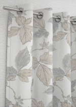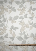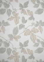 Der in einem milden Weisston gestaltete Stoff offenbart Blätter in hellem Beige und dunklerem Graubeige, die sich durch den zarten Schimmer und die detailreichen Umrisse, Stiele und Blattadern eindrucksvoll abheben. Bei der Dekoration können Sie in der Welt der sanften Erdtöne bleiben oder auch rauchige Grüntöne wie Olivgrün, Lindgrün und Salbeigrün ins Spiel bringen. Warm glänzende Metalle wie Kupfer und Messing greifen den edlen Schimmer des Designs nochmal auf.