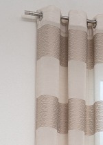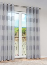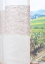 Beim ersten Eindruck erinnert das Muster dieses Vorhangs an ein klassisches Streifendesign. Bei genauerem Hinsehen erkennt man jedoch einen ganz besonders kreativen Kniff und zwar ein zusätzliches wellenartiges Motiv als Schmuckelement. Mit dieser lebendigen Ausstrahlung kann der Schal in nahezu jedem Raum eingesetzt werden. Dank der halbtransparenten Polyesterqualität bietet er vielfältige Anwendungsmöglichkeiten, im Wohn- wie im Schlafbereich. Der Vorhang lässt ausreichend Tageslicht durchs Fenster, gewährt trotzdem ein gewisses Mass an Sicht- und Blendschutz. Im Schein künstlicher Beleuchtung kann es abends jedoch zu mehr Einblicken kommen, als Sie es möchten. Die Ösen des Vorhangs sind metallisch verstärkt und ermöglichen eine schnelle Befestigung an einer Gardinenstange oder einem bereits vorhandenen Seilspannsystem. Durch einfaches Kürzen lässt sich der maschinenwaschbare, an Seiten und am Abschluss gesäumte Schal bequem auf die gewünschte Länge anpassen.