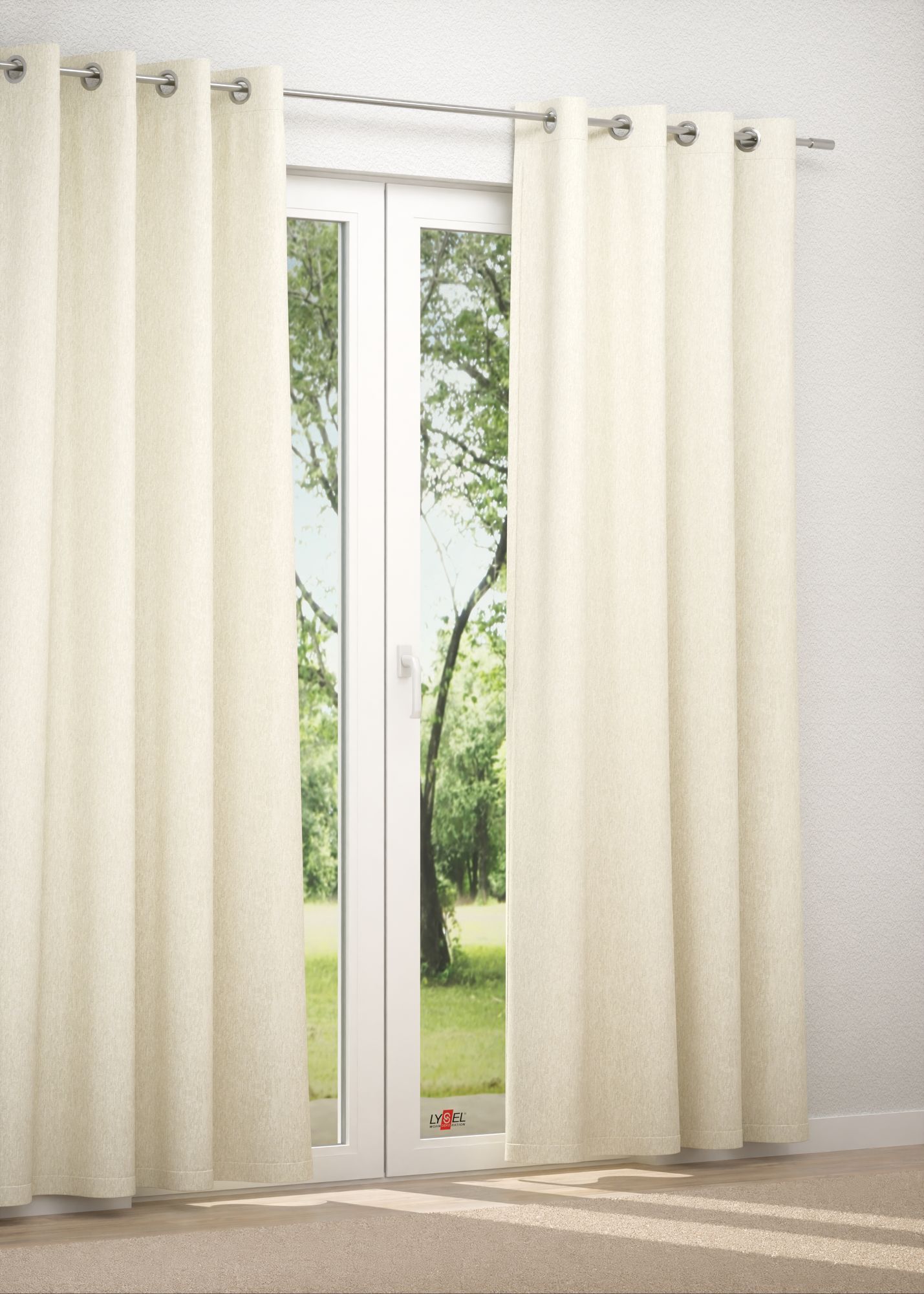 - Ein Ösenschal aus lichtdurchlässigem Stoff, 81% Polyacryl/ 19% Polyester - individuell nach Ihren Wunschmassen gefertigt.