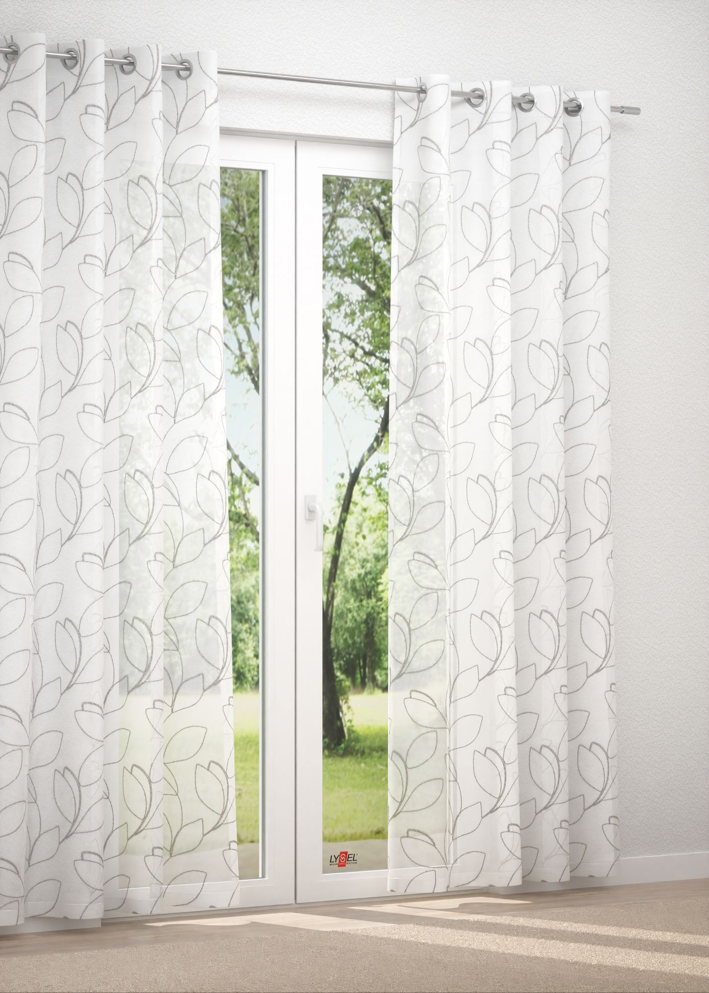 - Ein Ösenschal aus transparentem Stoff, 100% Polyester - individuell nach Ihren Wunschmassen gefertigt.